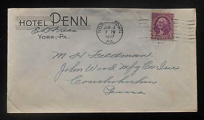 1937 POSTAL HISTORY Hotel Penn E. D. Freas Norristown York PA Cover Pennsylvania