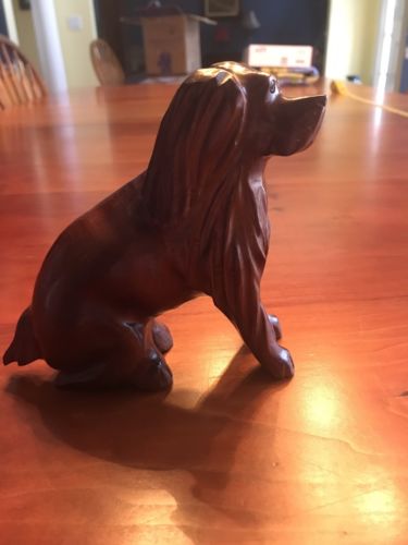 Hand Carved Mahogany Spaniel Dog Figure Vintage