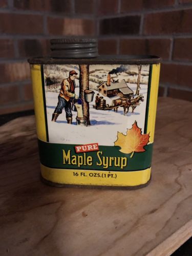 Title (ebay affiliate link): Vintage 16 Ounce Vermont Maple Syrup Can Advertising Tin Horse Cabin Metal