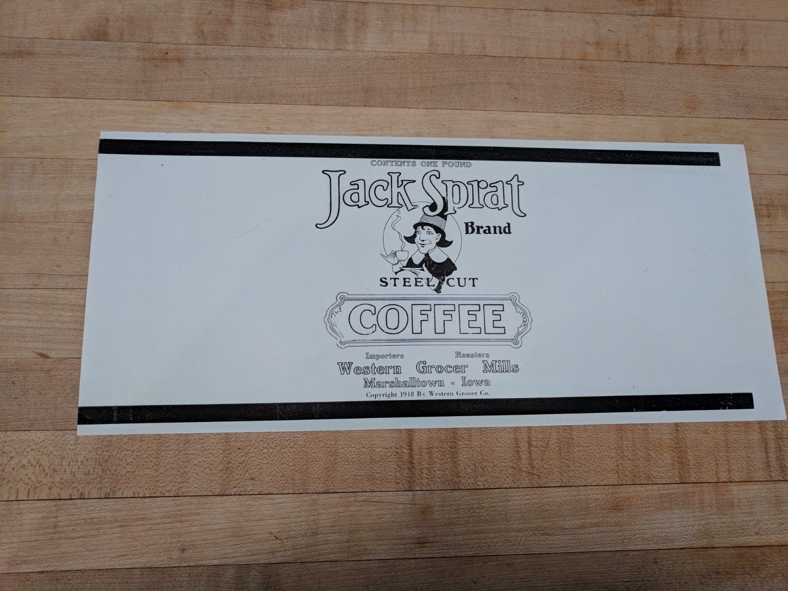 Vintage 1918 Jack Sprat Brand Coffee Tin Can Label Calvert Lithograph