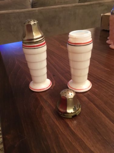 Title (ebay affiliate link): Art Deco Hazel Atlas Moderntone White/stripe Platonite Salt & Pepper Shakers
