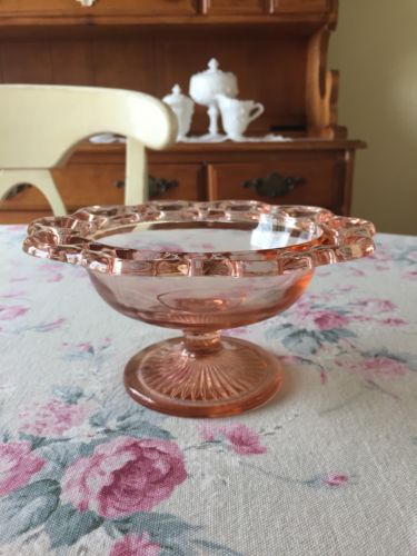 Title (ebay affiliate link): VINTAGE Anchor Hocking OLD COLONY Pink Depression Glass PEDESTAL BOWL Lace Edge