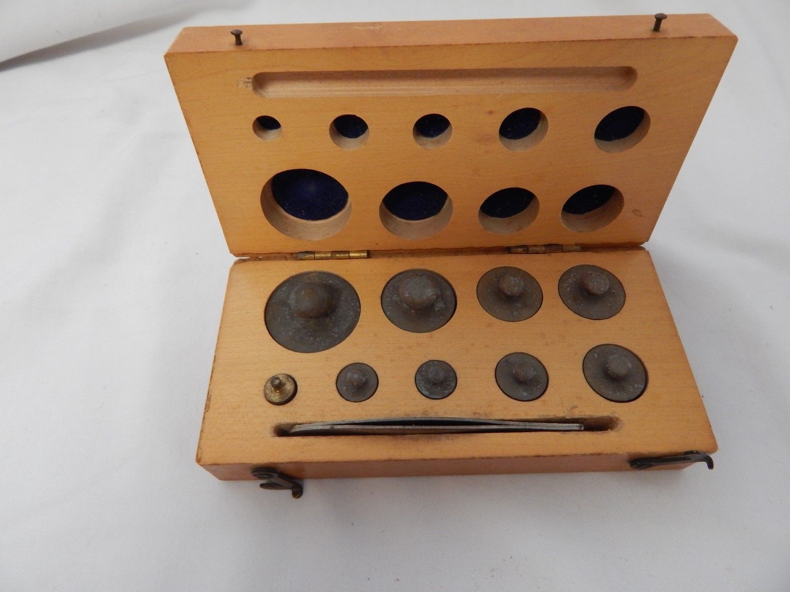 Title (ebay affiliate link): VINTAGE BRASS BALANCE SCALE WEIGHTS SET IN WOOD BOX..