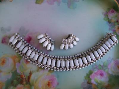 Vintage KRAMER of NYC Milk Glass Rhinestone Bracelet & Earings