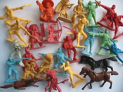 vintage lot of 25 cowboys and Indians plastic figurine toys