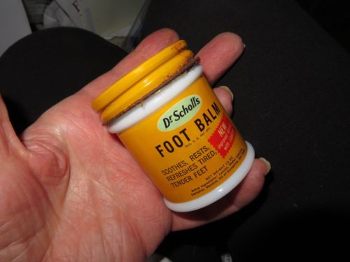 Vintage Dr Scholls Foot Balm Milk Glass Jar, almost FULL