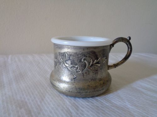 Title (ebay affiliate link): Antique Shaving Mug Milk Glass Liner Quadruple Plate Holder Empire Mfg