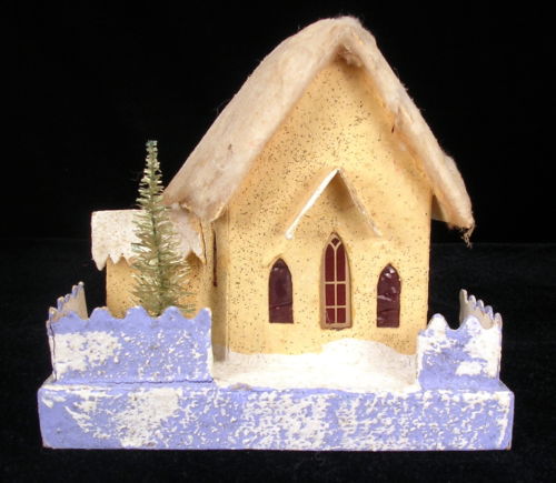 Title (ebay affiliate link): Vintage Christmas Village Cardboard Paper Putz House Japan COTTON TOPPER 1940''s