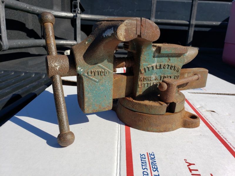 Title (ebay affiliate link): Vintage Littlestown Littco No.112 Bench Vise, Howe & Fory Co-Anvil-Swivel