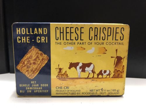 Vintage Delft Holland CHE-CRI Cheese Crispies Advertising Tin - Cows, Windmills