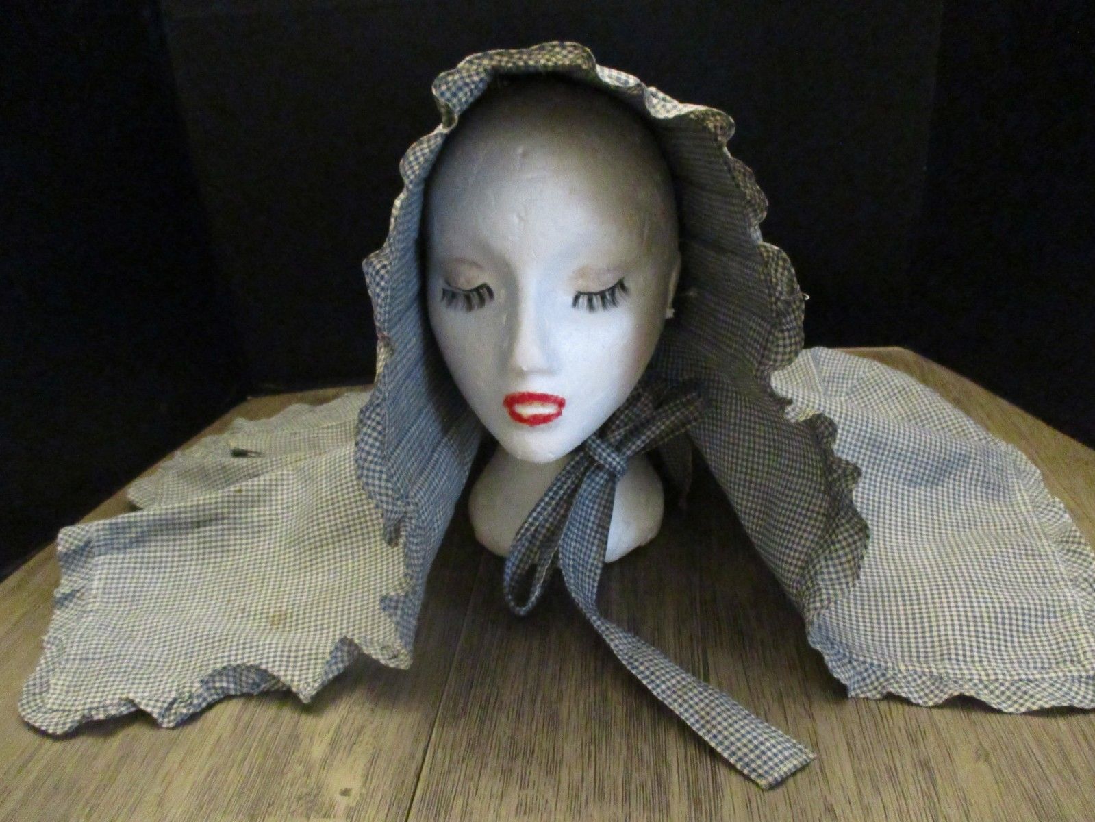Title (ebay affiliate link): ANTIQUE PRIMITIVE BLUE HOMESPUN ALL HAND SEWN PRAIRIE BONNET HUGE BRIM