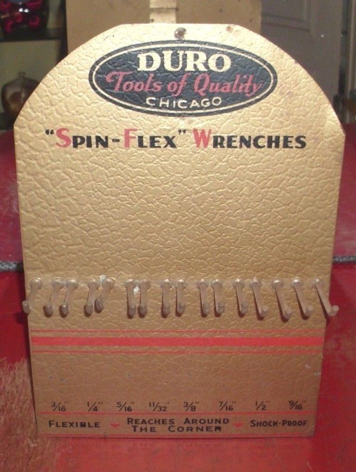 Title (ebay affiliate link): One original Duro Spin-Flex wrench stand- up metal display - 1930''s