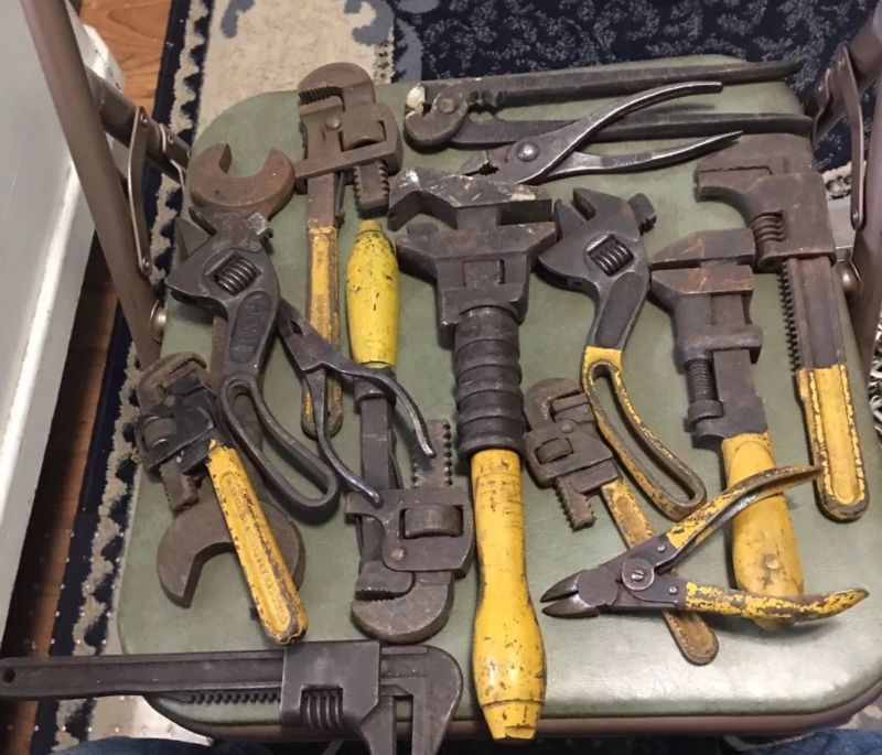 Title (ebay affiliate link): Vintage lot of Tools Pipe wrenches Pliers etc