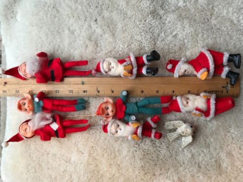 Title (ebay affiliate link): Vtg Mid Century Felt Santa Elf Lot Xmas Feather Tree Ornaments
