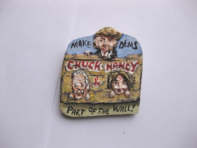 Title (ebay affiliate link): President Donald Trump "Make Dems. Part of Wall" Novelty Political Pin
