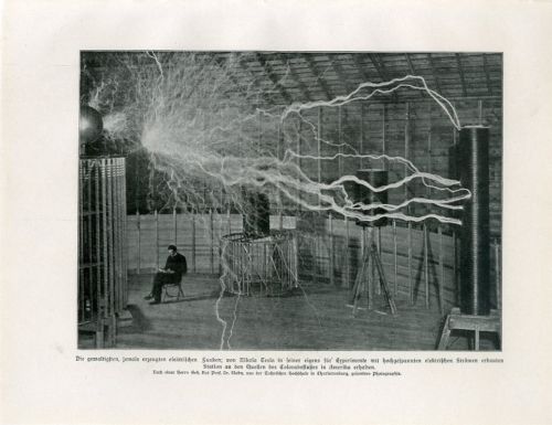 Title (ebay affiliate link): c1900 NIKOLA TESLA ELECTRICAL ENGINEER LIGHTNINGS Antique Litho Print W.Bolsche