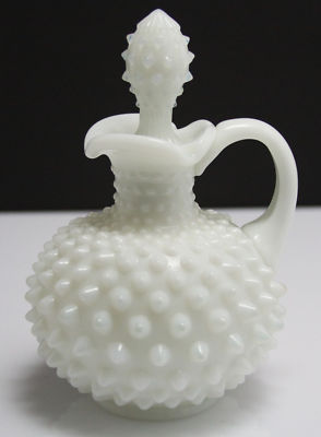 VINTAGE FENTON MILK GLASS HOBNAIL CRUET APPLIED HANDLE