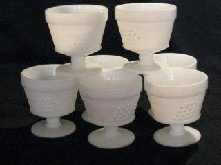 SET SIX MILK GLASS SHERBET ANCHOR HOCKING GRAPE VINTAGE