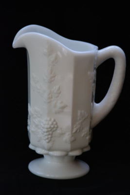 VINTAGE WESTMORELAND MILK GLASS PANELED GRAPE PITCHER
