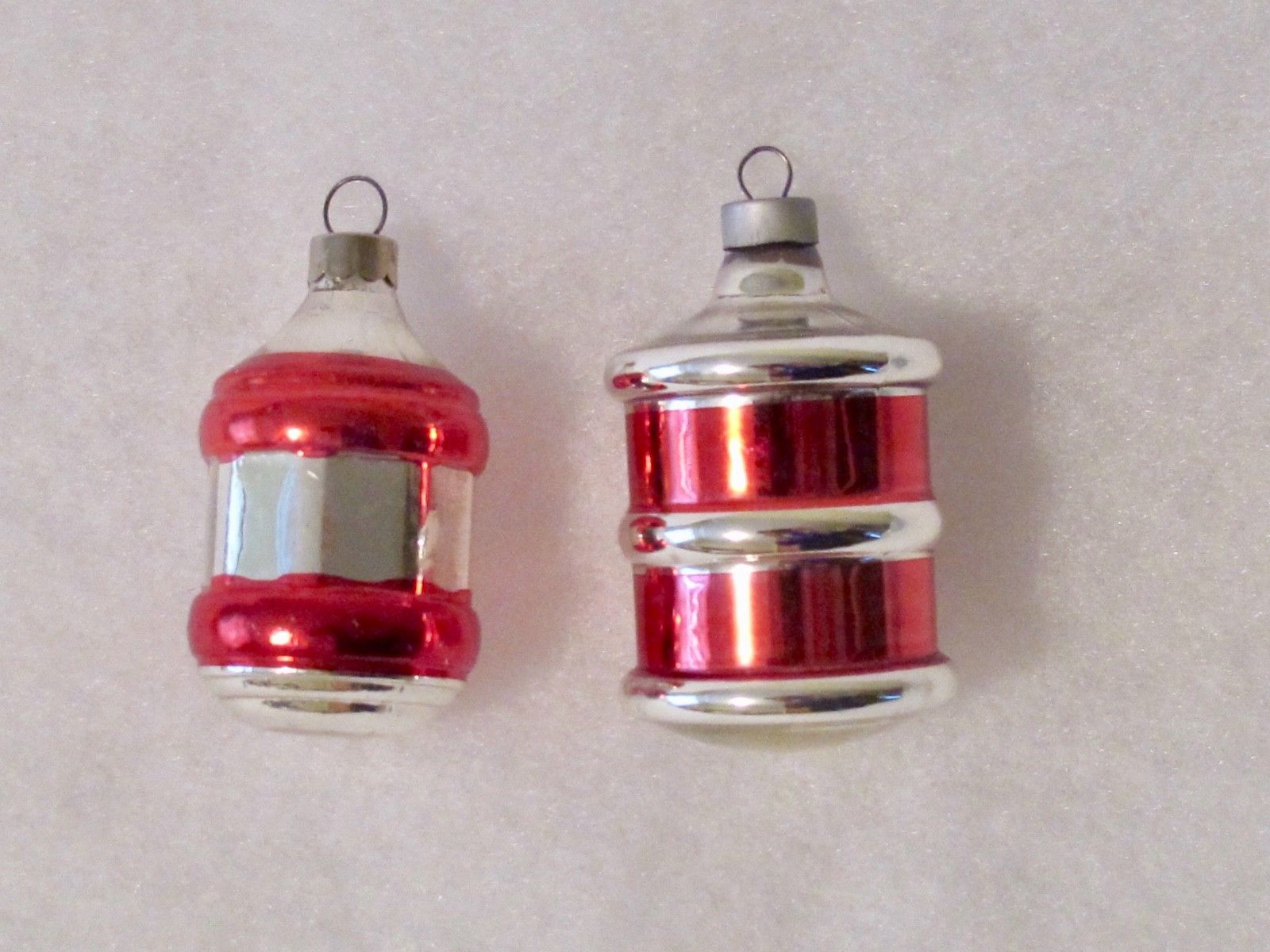 Title (ebay affiliate link): 2 Vtg RED SILVER Early American made CORNING Christmas Ornaments 1930 - 1940