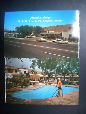 Title (ebay affiliate link): 2 VINTAGE POSTCARD VIEWS OF ARCADIA LODGE, KINGMAN, AZ 1950''S