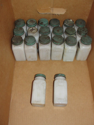 1930'S 20 GRIFFITH LABORATORIES MILK GLASS SPICE JARS