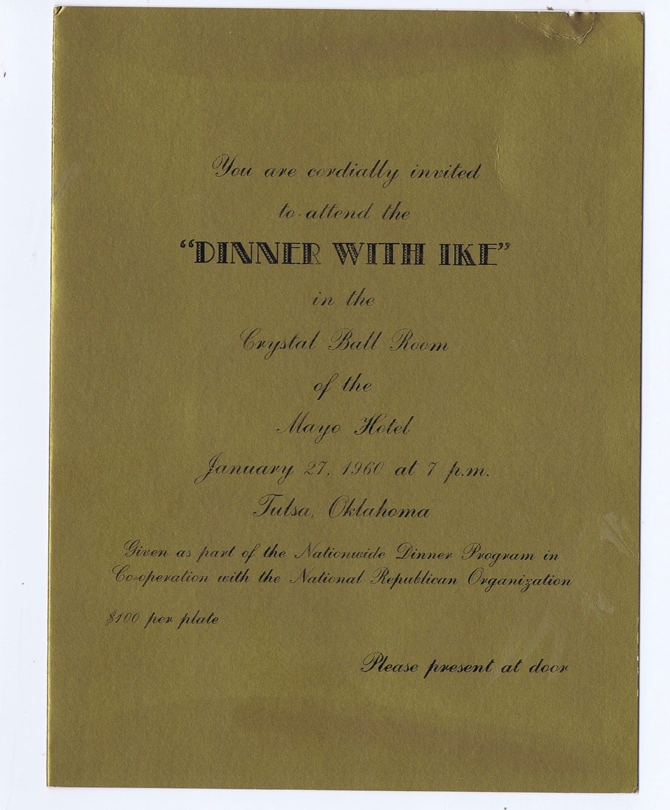 Dinner With Ike Eisenhower invitation Tulsa Oklahoma 1960 Mayo Hotel