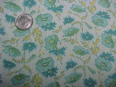 Vintage Antique Cotton Quilt Doll Fabric AQUA Floral 30s Depression Era Sew