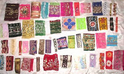 BIG LOT Antique Vintage Sari TRIM RIBBON LACE 50 Pcs 4" to 11" CRAFT DOLL #ABEMA