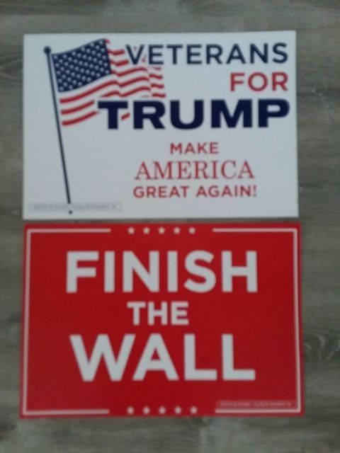 Title (ebay affiliate link): TRUMP SIGN LOT FINISH THE WALL AND VETERANS FOR TRUMP AUTHENTIC RALLY SIGNS