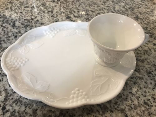 Title (ebay affiliate link): Harvest Milk Glass Snack Set Colony Grapes Leaves Scalloped Plate and Teacup