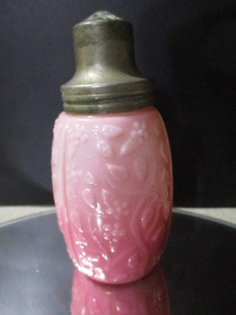 EAPG CONSOLIDATED PINK MILK GLASS SHAKER 3 PANEL LEAF & DAISY FLOWER