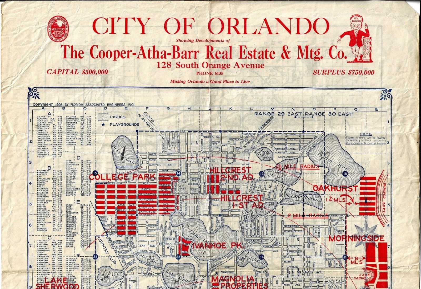 ORLANDO, FLORIDA 1926 MAP, 22X17 INCHES, ORANGE COUNTY, FL., MAP ON REVERSE SIDE