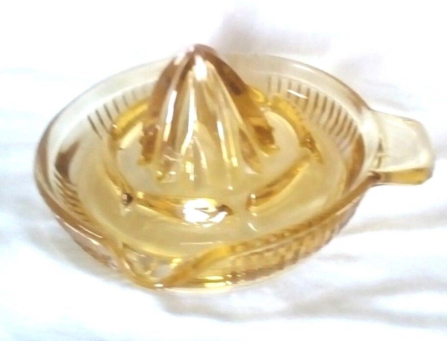 Title (ebay affiliate link): VINTAGE YELLOW DEPRESSION GLASS JUICER REAMER FLAT HANDLE RIBBED SIDES