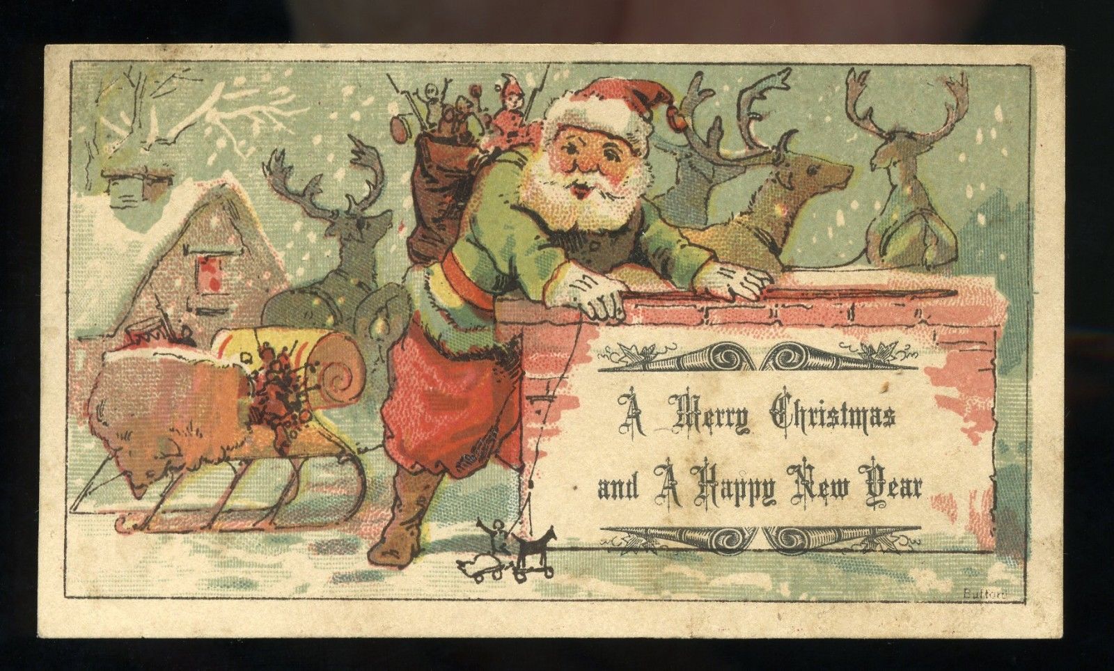 Title (ebay affiliate link): VICTORIAN SANTA AT CHIMNEY ON ROOF, H.P.R. BLANDY PROPRIETOR OSCEOLA DRUG STORE