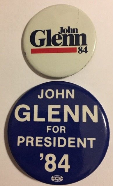 Title (ebay affiliate link): 1 3/4" and 2 1/4" John Glenn for President ''84 Pins for the Oley Foundation