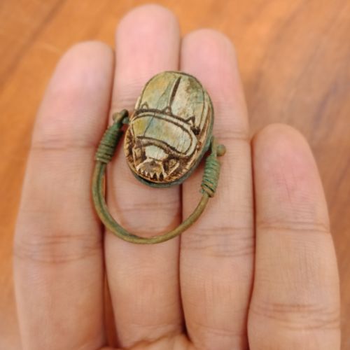 Title (ebay affiliate link): Ring Scarab Egyptian Ancient Egypt Antique Copper Rare Stone B Faience Beetle