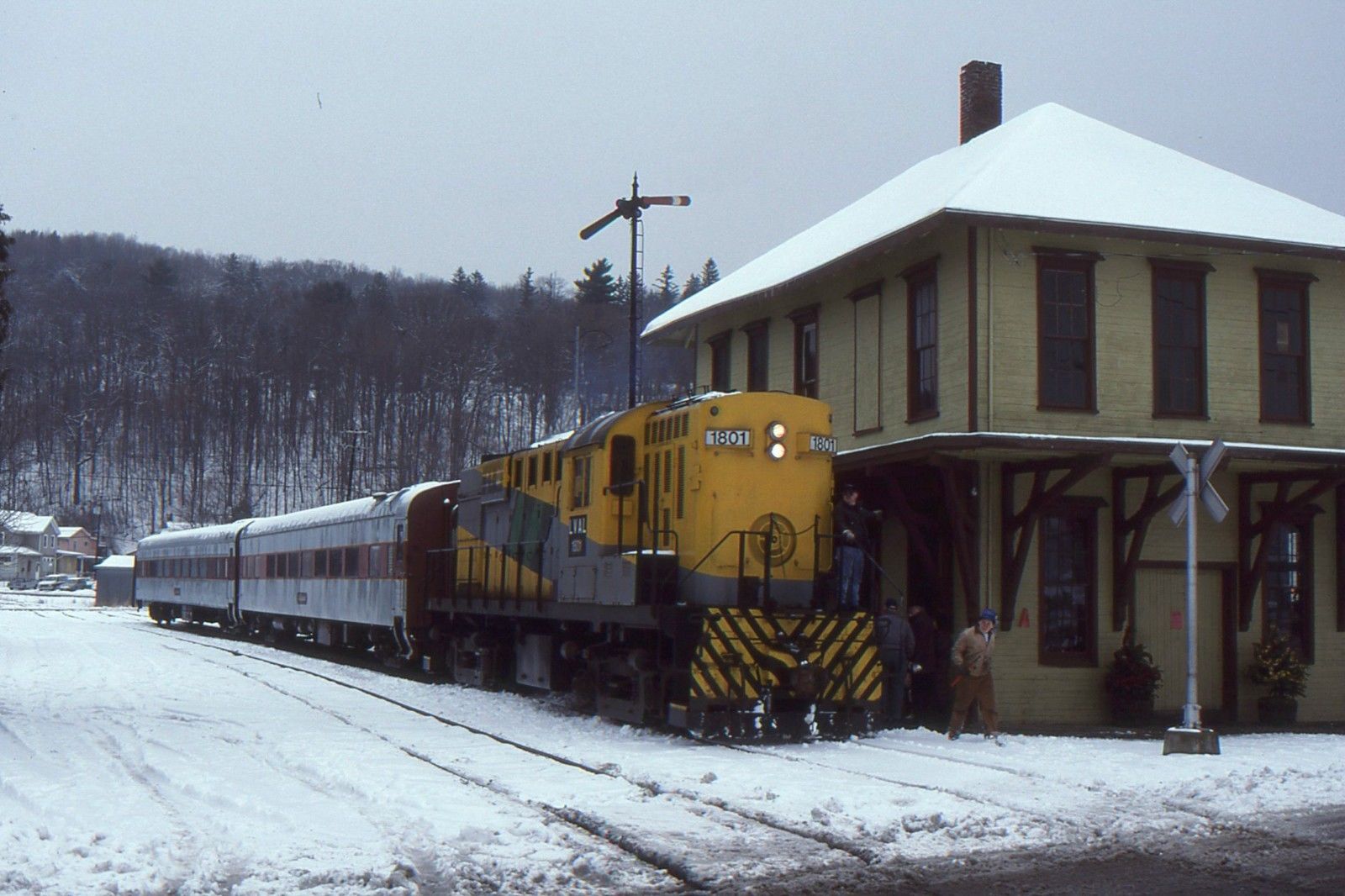 Original slide-Lackawanna Valley RS18 #1801 & Train w/Semaphore,Owego,NY.1992!
