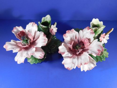Title (ebay affiliate link): Vintage Pair Candleholders Capodimonte Nuova Floral Italy Porcelain Pink Green