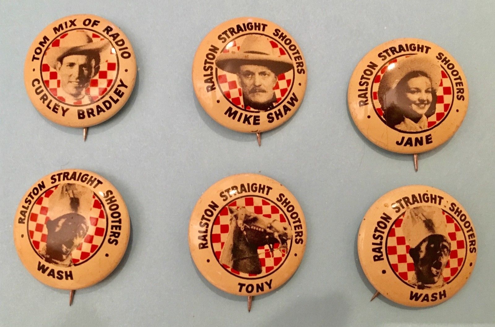 Title (ebay affiliate link): Vintage 1946 Ralson Tom Mix Straight Shooters Decoder Pins (lot of 6)