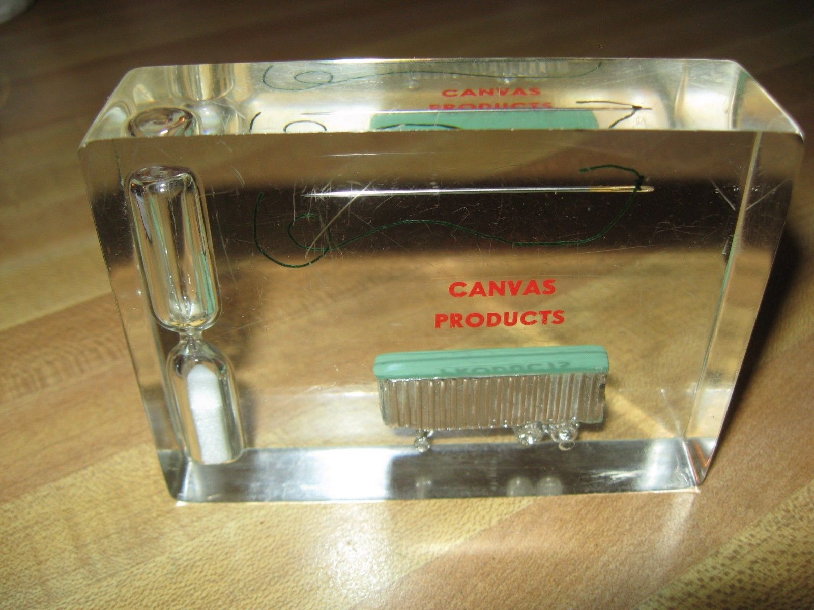 Title (ebay affiliate link): MCM Lucite Truck Trailer Canvas Products Needle Thread Minute Timer Paperweight