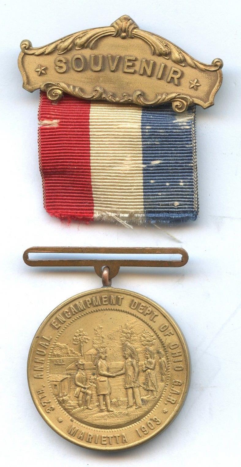 Title (ebay affiliate link): 1903 SOUVENIR MEDAL, BADGE - 37TH ANNUAL G. A. R. ENCAMPMENT - MARIETTA, OHIO