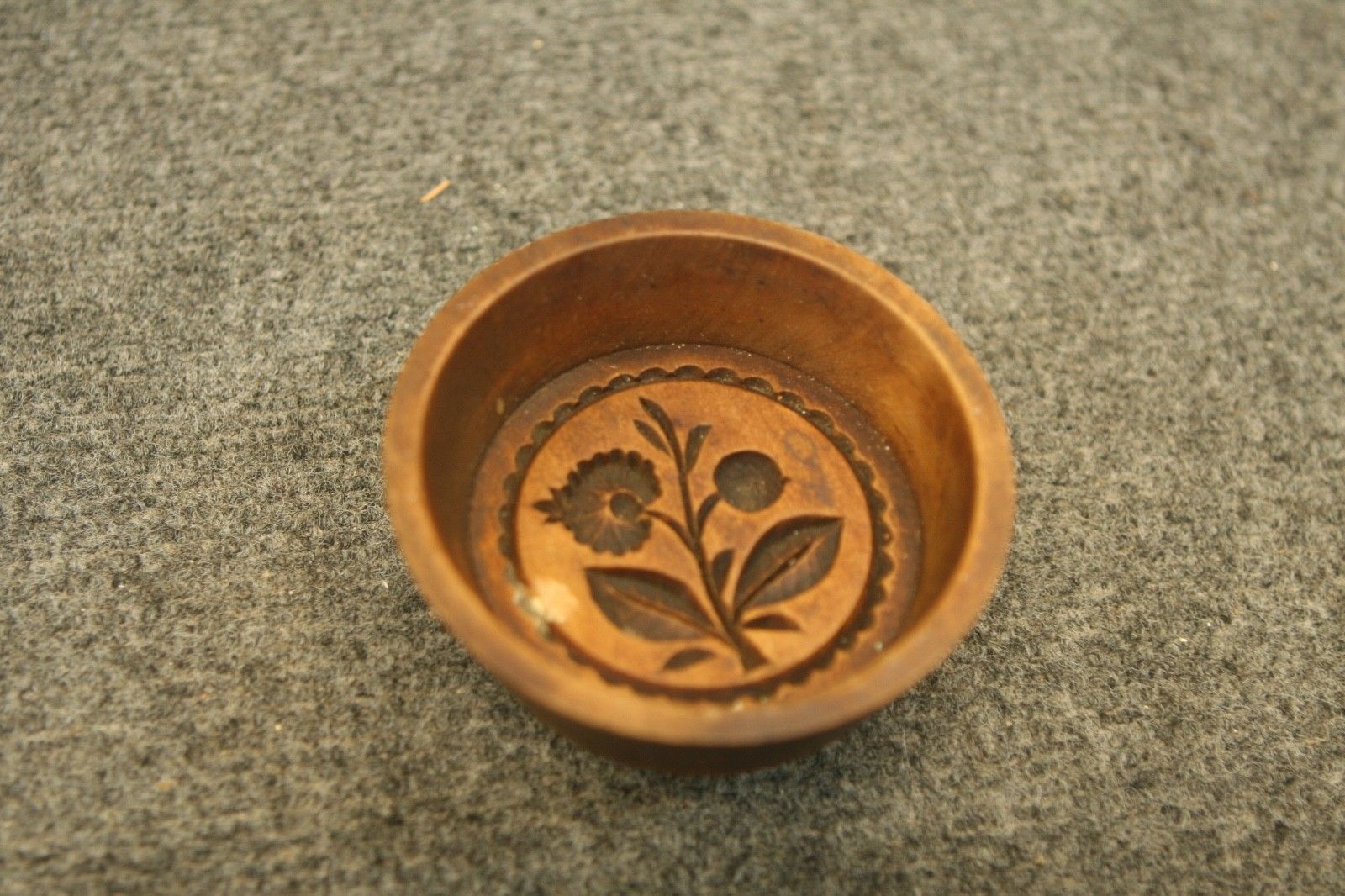 Vintage Antique Wood 3" Cup Form Floral Butter Press Country Kitchen Hand Hold