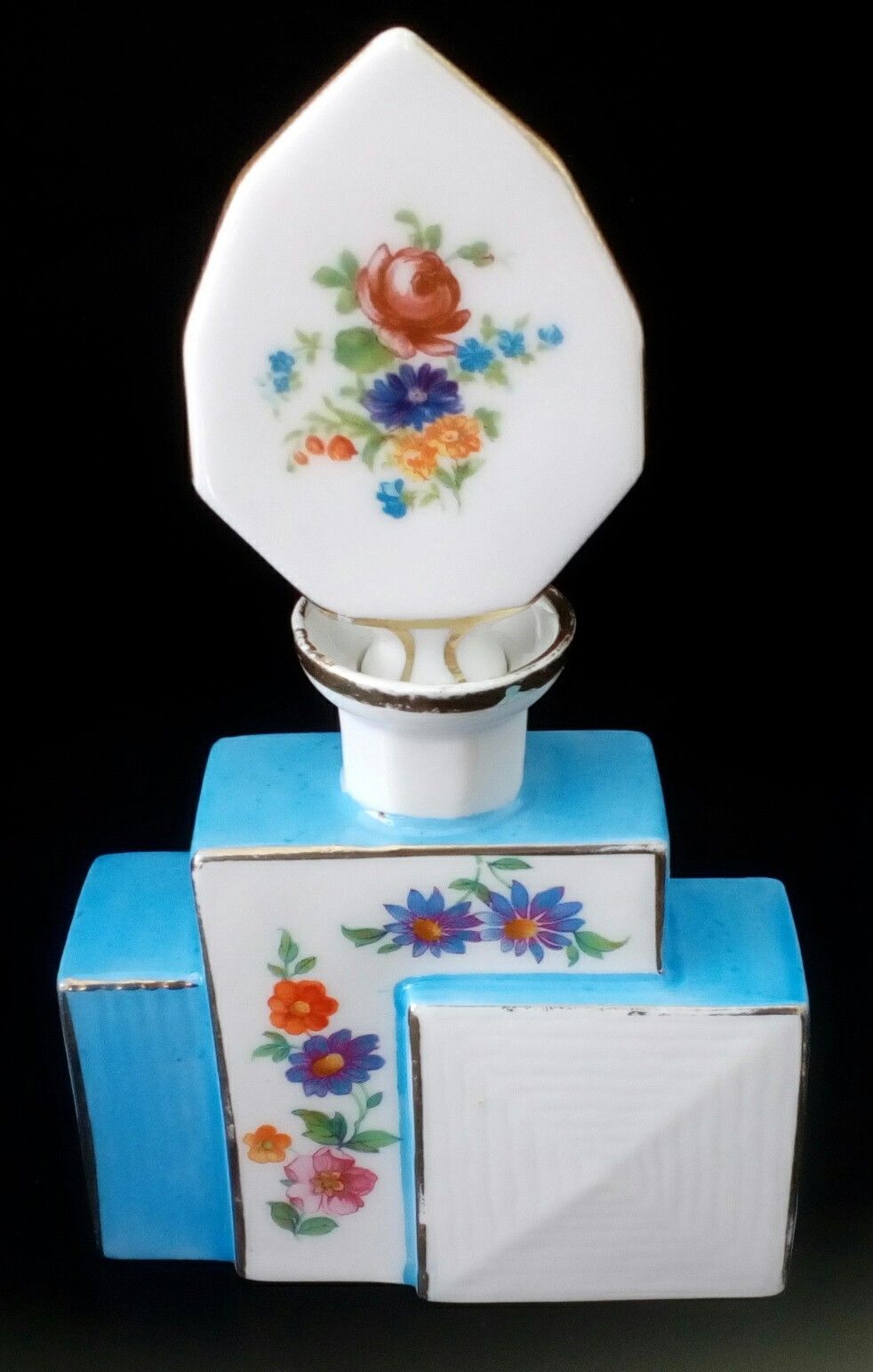Vintage Porcelain Perfume Bottle Art Deco 20''s - 30''s Bavaria Blue White Gold