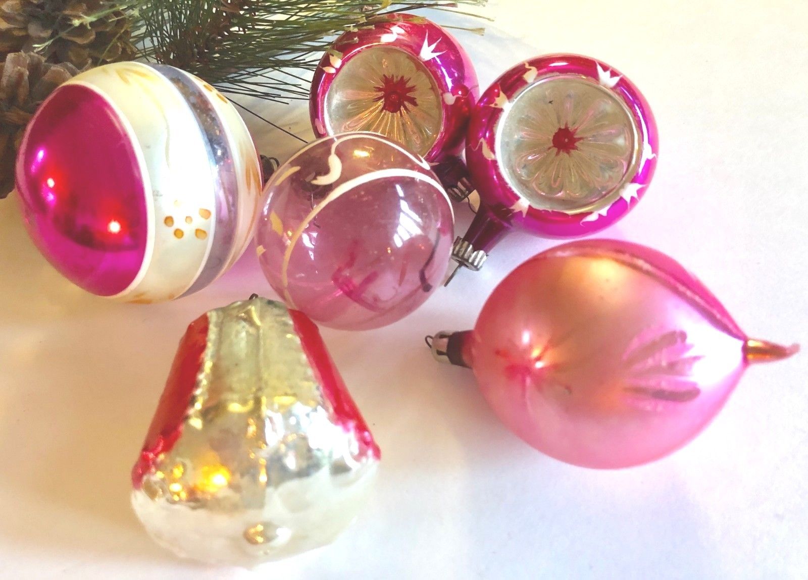 Title (ebay affiliate link): 6 Antique/VTG Indent/Teardrop Glass PINK Xmas Tree Ornaments Hand Painted Nice!