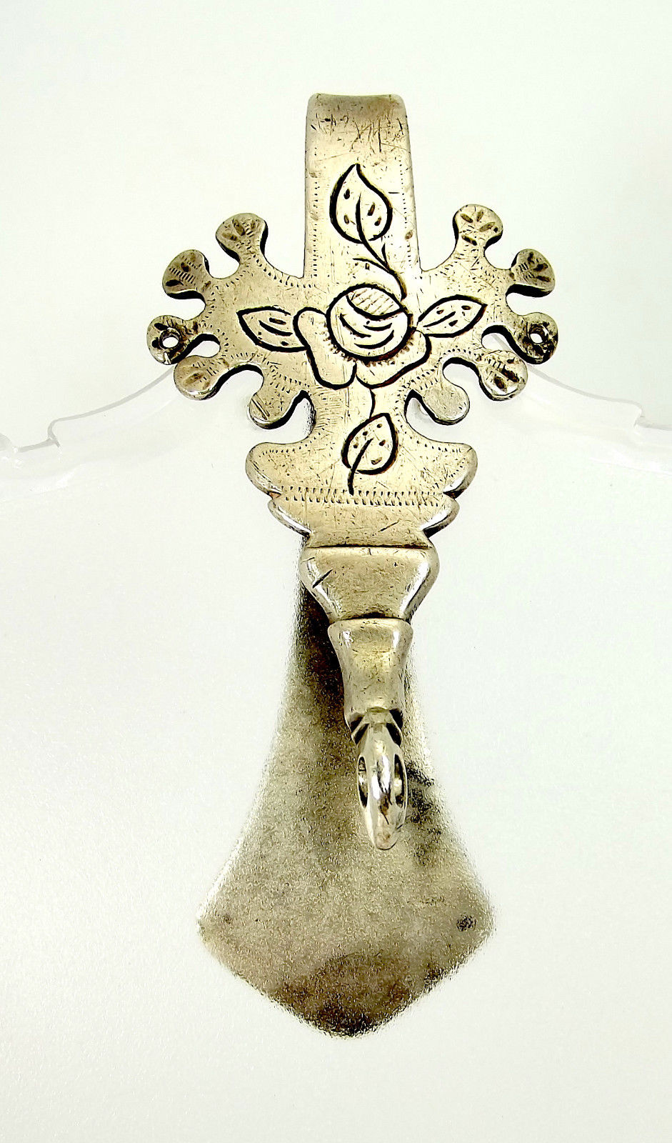 Title (ebay affiliate link): Antique EDWARDIAN Silver Plate CHATELAINE CLIP Hand Engraved