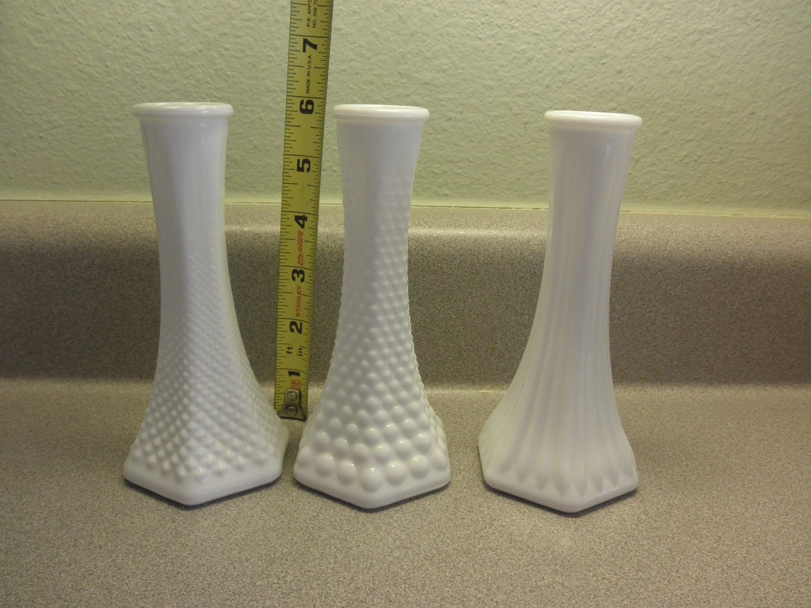 Set Of 3 Vintage Milk Glass Vase 6" Tall Â