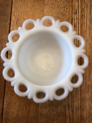 Vintage Lace Edge Footed Milk Glass Compote Candy Dish