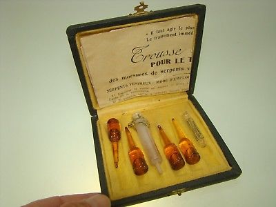 Title (ebay affiliate link): ANTIQUE MEDICAL SURGICAL SET AGAINST SNAKE NUTS CONTAINS AMPOULES ANTISERUM 1925