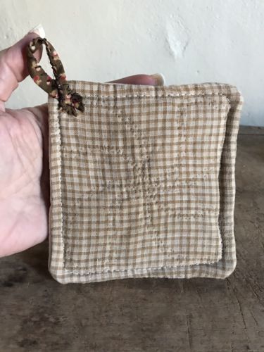 Title (ebay affiliate link): Early Brown Homespun Calico Antique Handmade Pot Holder Peg Rack AAFA Textile